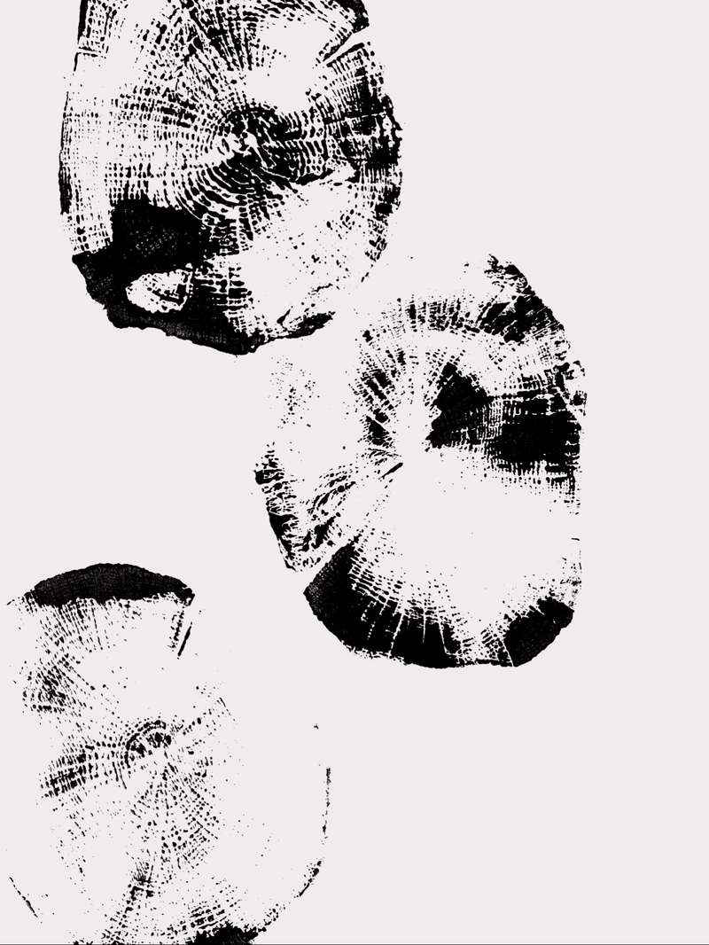 Et tryk af et træsnit blev videreudviklet til et sammenhængende mønster, som fungerede som en rød tråd gennem hele udstillingen.